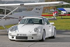 Beim Blick ins Interieur springen die dp-935-Schalensitze, das leichte Carbon-Armaturenbrett, ein spezielles Knieleisten-Set sowie der erhöhte Mitteltunnel ins Auge. Als Gegenpol zur äußeren Wagenfarbe überwiegt innen Alcantara in Schwarz. Ein eingeschweißter Sicherheitskäfig, ein lackiertes Sportlenkrad mit Porsche Hup-Knopf, ein Deckel anstelle der Uhr und Bodenplatten aus Carbon sind für jedermann sichtbar. Schließlich sind da noch Specials, wie der dp-Clubsporttank mit einem Fassungsvermögen von 70 Litern, eine 25 Ampere Gel-Starterbatterie, ein kleinerer Tank für die Scheibenreinigung, eine leichte, elektrische Lüftung für den Innenraum, ein Mittelölkühler mit Entlüftung durch die Fronthaube sowie das aus Carbon bestehende Bremskühlgehäuse.