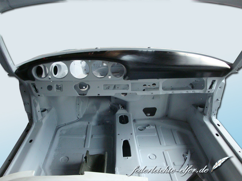 Extra leichtes Armaturenbrett aus GFK oder Carbon, Oberfläche schwarz.