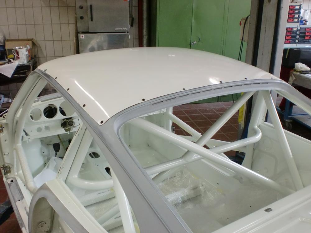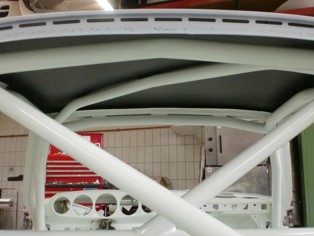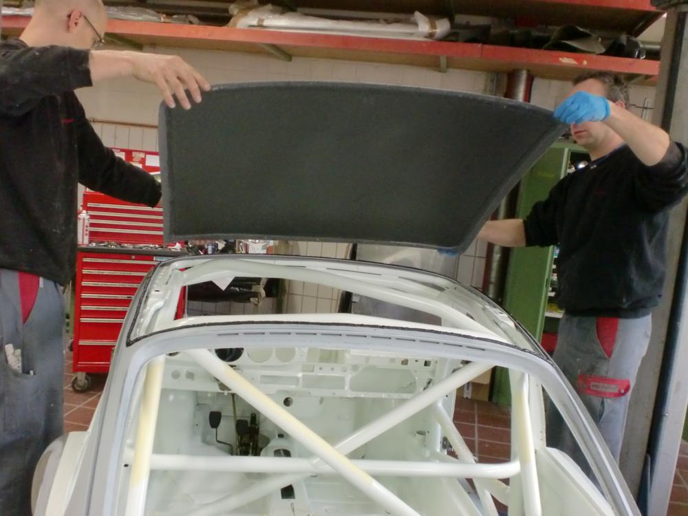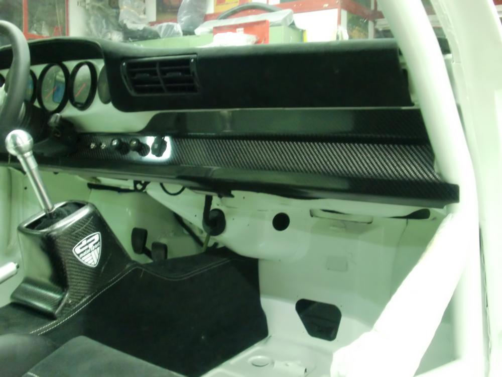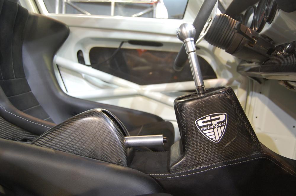 eingeschweißter Sicherheitskäfig, lackiertes Sportlenkrad mit Porsche Hupenknopf, Deckel anstatt Uhr sowie Carbon-Bodenplatten