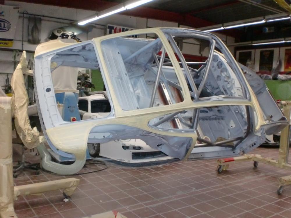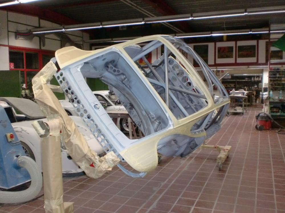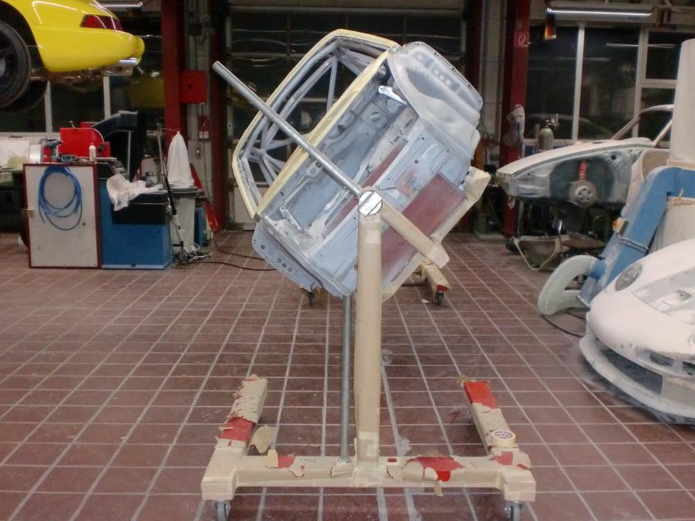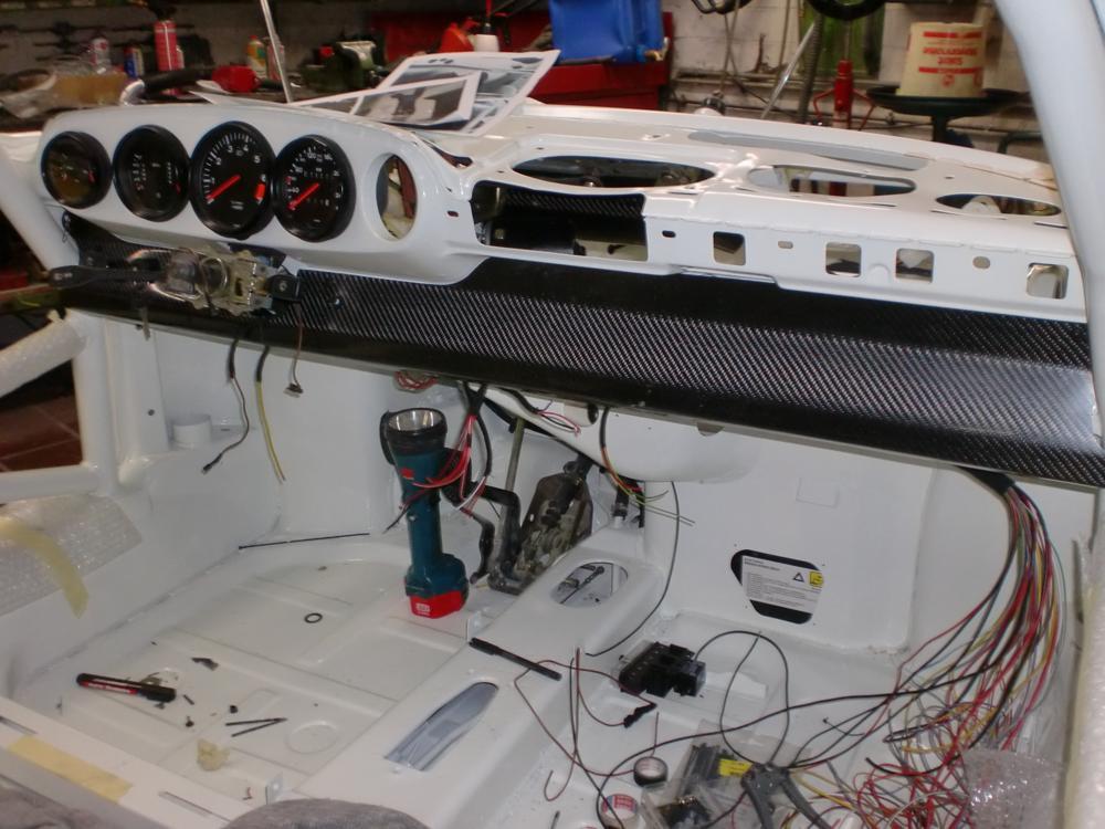 eingeschweißter Sicherheitskäfig, lackiertes Sportlenkrad mit Porsche Hupenknopf, Deckel anstatt Uhr sowie Carbon-Bodenplatten